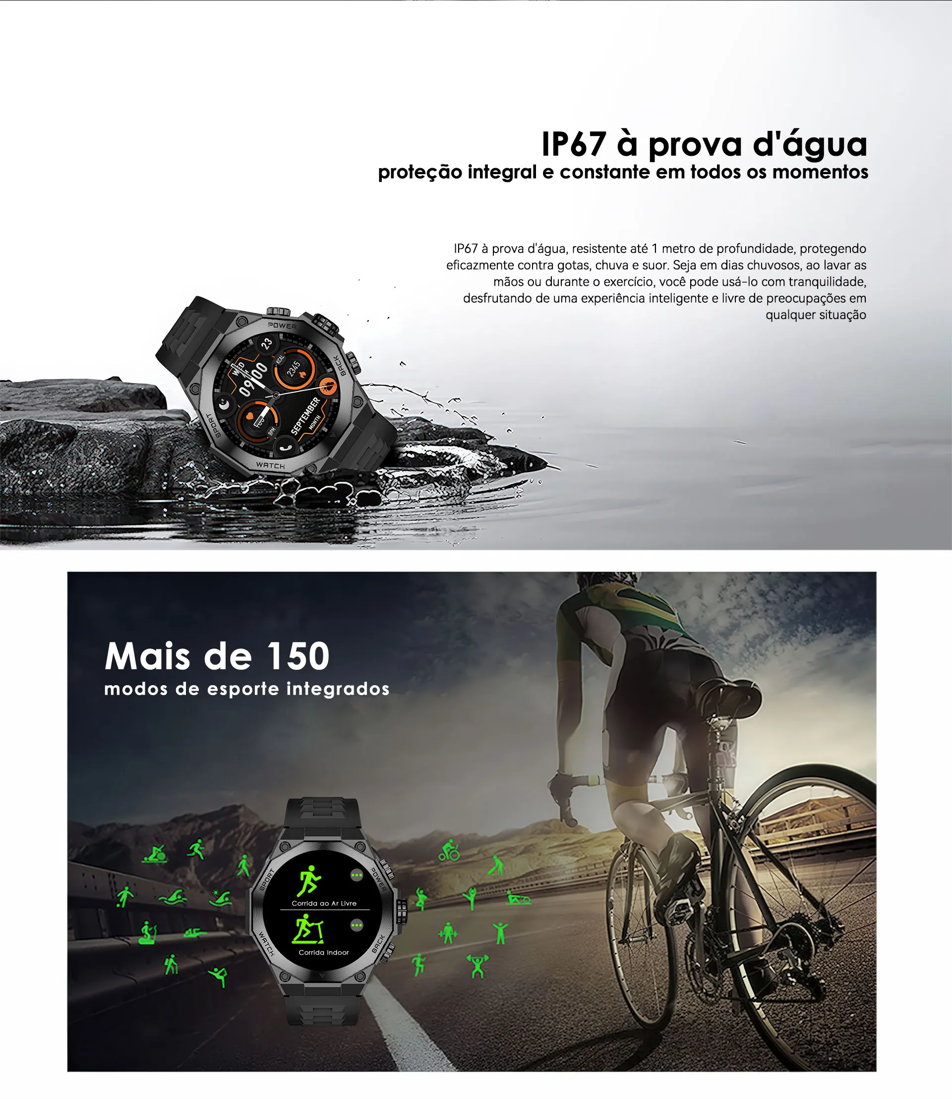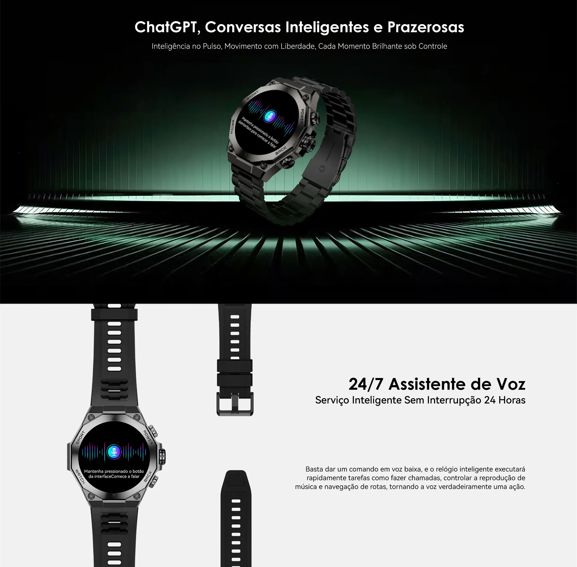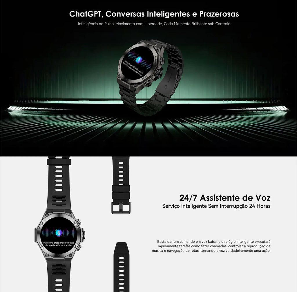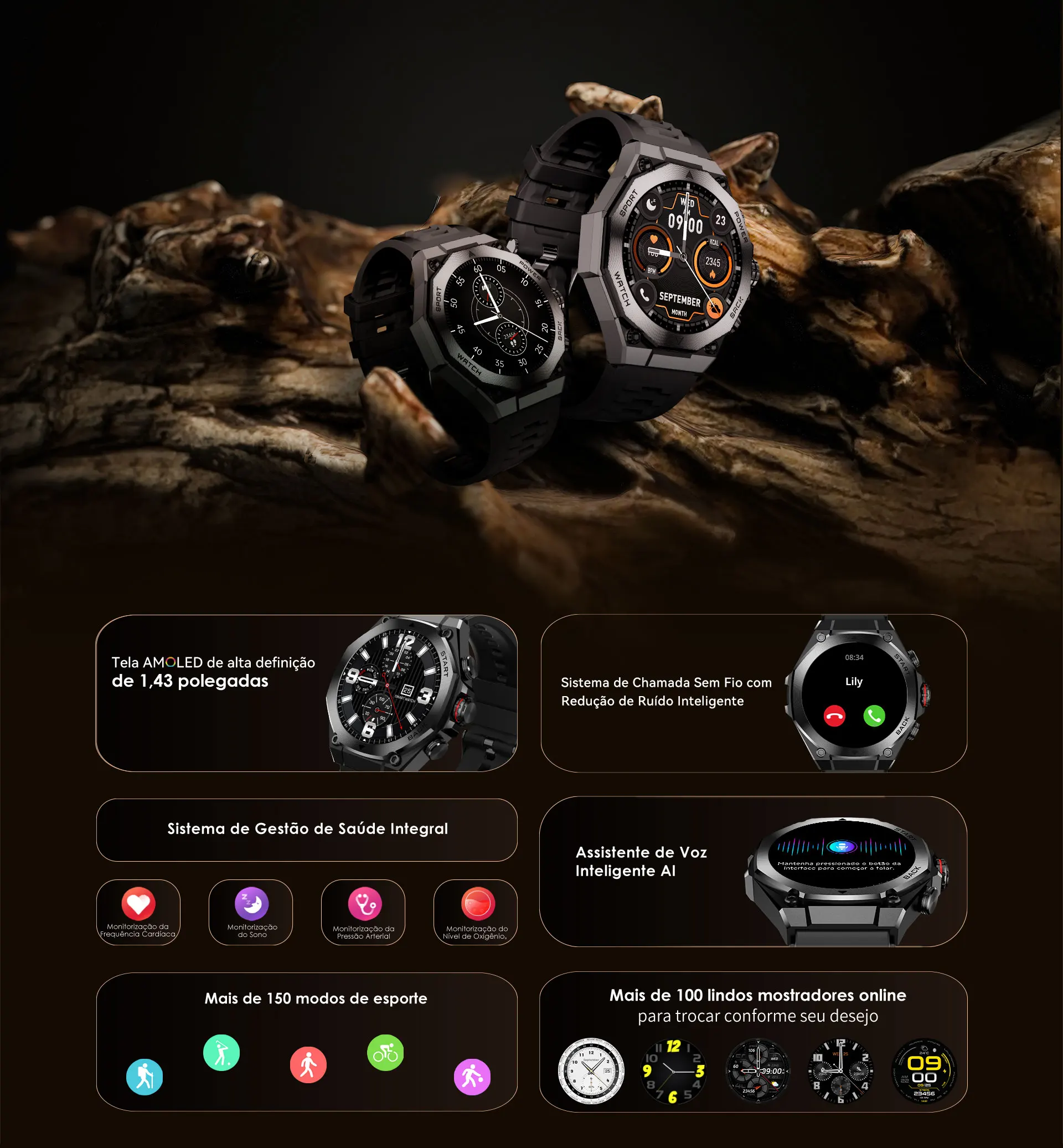 O AM18 Smartwatch AURAFIT ENERGY 2 é um relógio inteligente robusto projetado para homens que buscam monitoramento completo de saúde e desempenho esportivo. Equipado com tela AMOLED de 1.43", oferece visualização nítida e cores vibrantes em qualquer condição de luz. Com mais de 150 modos esportivos, acompanha desde corridas e ciclismo até treinos de força e yoga. O monitor de saúde integrado rastreia frequência cardíaca, qualidade do sono, níveis de oxigênio e estresse em tempo real. Compatível com Android e iOS, sincroniza dados facilmente com seu smartphone. Ideal para quem deseja um companheiro tecnológico confiável no dia a dia e nos treinos.