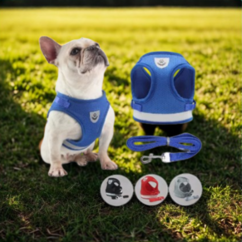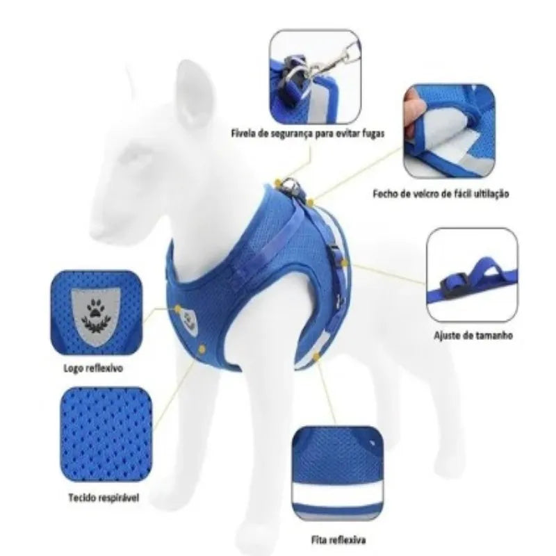 Coleira peitoral para cachorro com guia de passeio colete reflexivo regulável