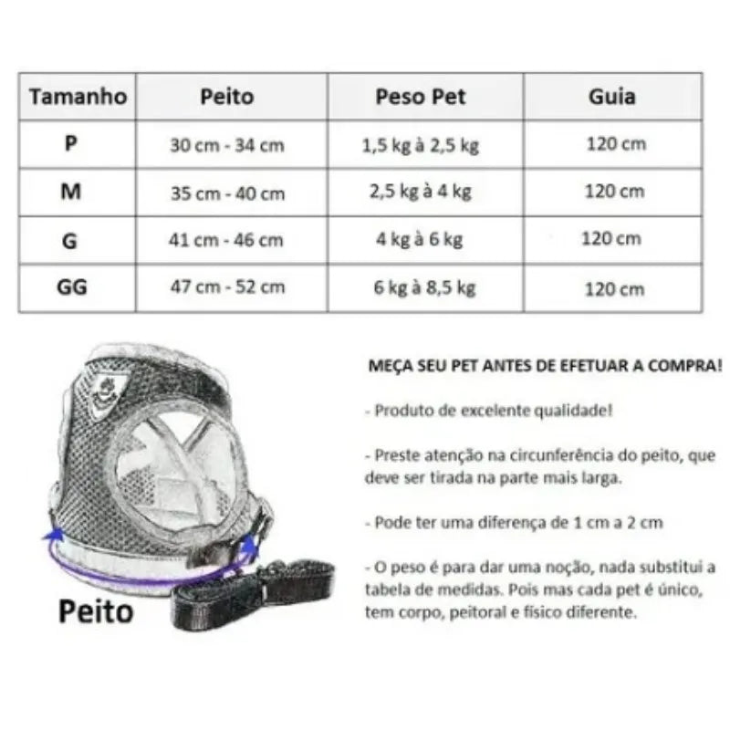 * Geralmente serve para Pets com Peso: 2,5 kg à 4 kg